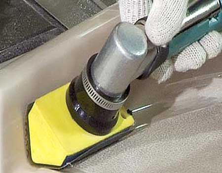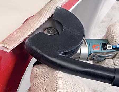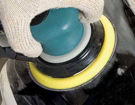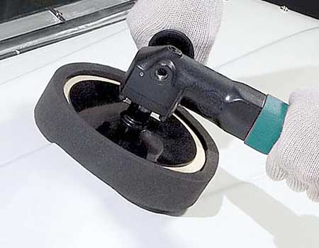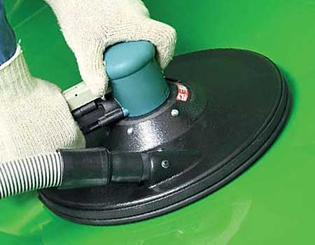50321 Pistol-Grip Disc Sander easily removes excess fiberglass. This tool is also used for scuff sanding on the boat's resin surface, preparing it for proper adhesion of buoyancy foam.